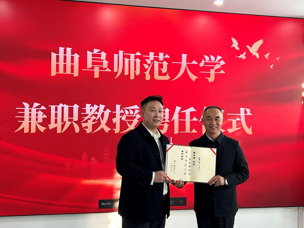 仪式上,曲阜师范大学党委常委、副校长李兆祥为曹先桥先生颁发兼职教授聘书。