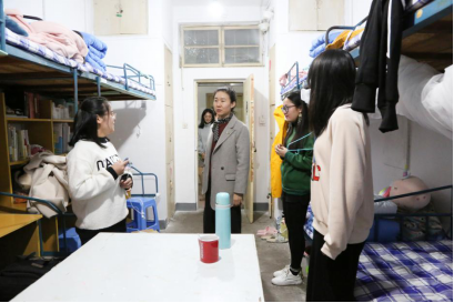 两位老师首先来到校内八号楼女生宿舍。老师们认真查看宿舍里的电线和插座有无裸露、漏电、冒火现象以及同学们有无使用大功率电器。曲老师指出,在使用多个排插、多台电器时要注意用电安全,离开宿舍前要及时拔掉插头,切勿使用“热得快”等大功率电器。对某些宿舍电线杂乱、私拉电线的问题,曲老师提出要合理规划电线和网线的布局,安全用电。在北公寓女生宿舍检查时,两位老师对各宿舍的电器使用和卫生清洁情况都提出了具体的改进意见并要求同学们尽快完善。
